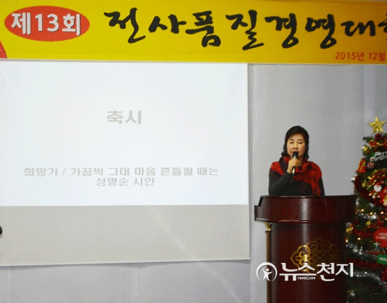 이날 품질경영대회에 참여한 김 대표의 아내 성명순(경기문학포럼 회장) 시인이 시낭송으로 마무리를 했다.