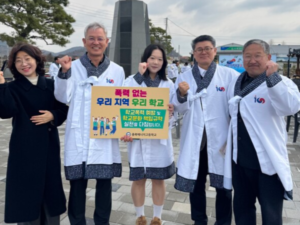[천지일보 충북=김홍진 기자] 충북에너지고등학교 구성원들이 28일 청주시 미원면에서 열린 ‘쌀안장터 3.1 만세 운동 기념식’에서 기념 촬영하고 있다. (제공: 충북도교육청)