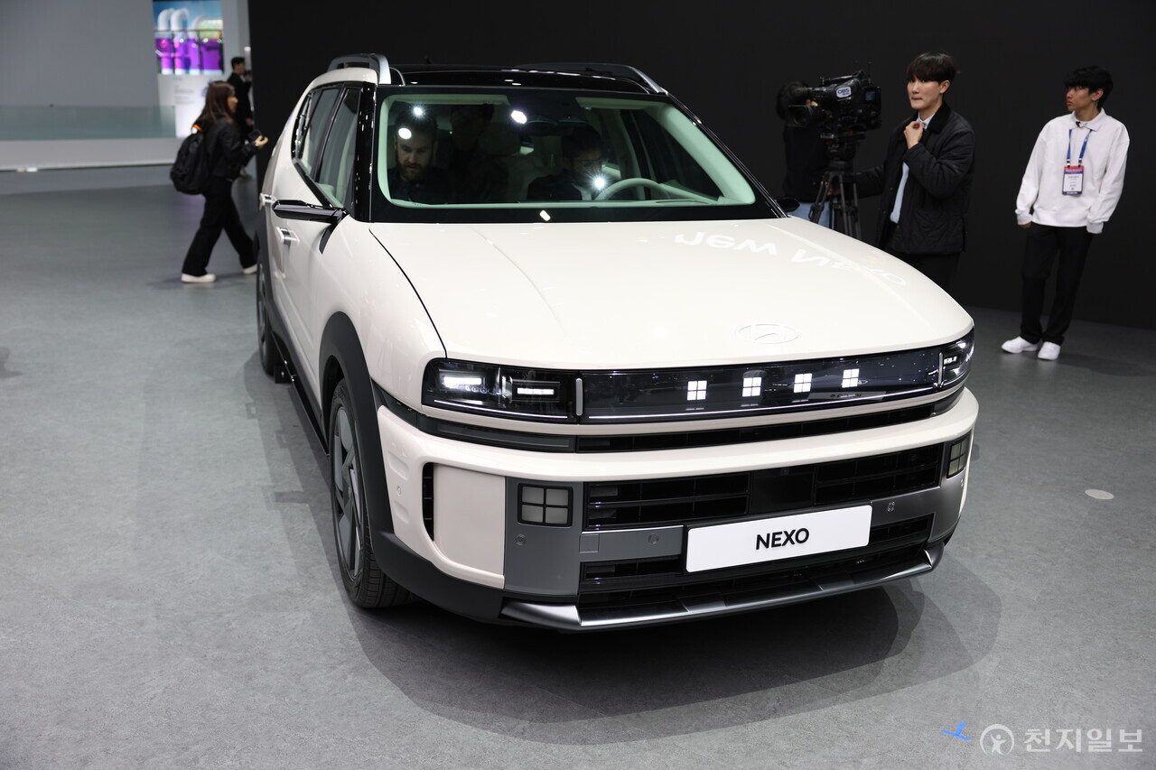 [천지일보=이재빈 기자] 현대자동차가 3일 일산 킨텍스에서 열린 ‘2025 서울 모빌리티쇼’에서 ‘디 올 뉴 넥쏘’와 ‘더 뉴 아이오닉 6’를 공개했다. 사진은 디 올 뉴 넥쏘.