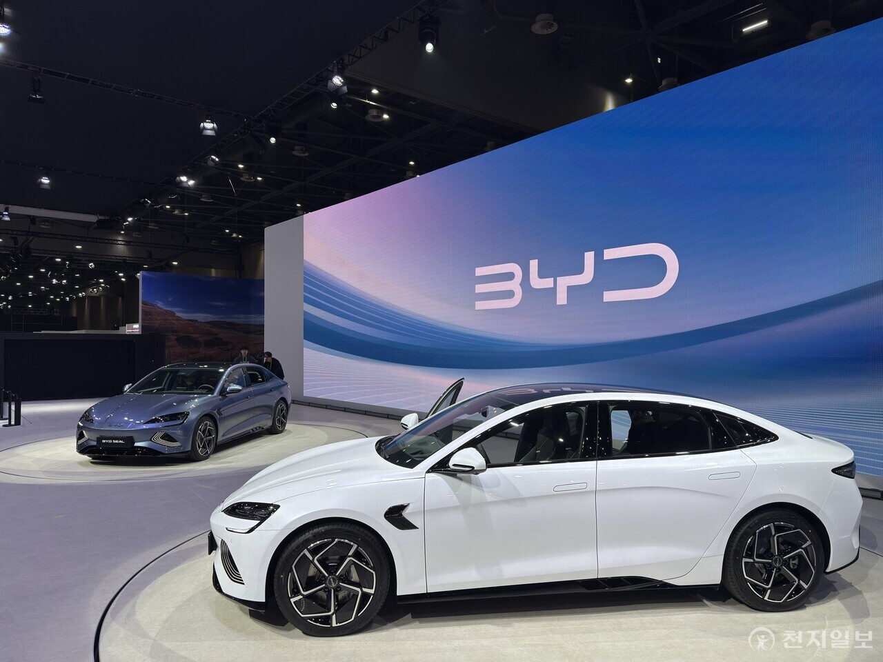 ![[천지일보=이재빈 기자] BYD(비야디)코리아가 3일 경기도 일산 킨텍스 제1 전시장에서 열린 2025 서울모빌리티쇼 미디어 데이에서 비야디 승용 브랜드의 두 번째 모델인 비야디 씰을 공개하고 사전예약을 실시한다. 사진은 비야디 씰. ⓒ천지일보 2025.04.03.](https://cdn.newscj.com/news/photo/202504/3253505_3313905_431.jpg)