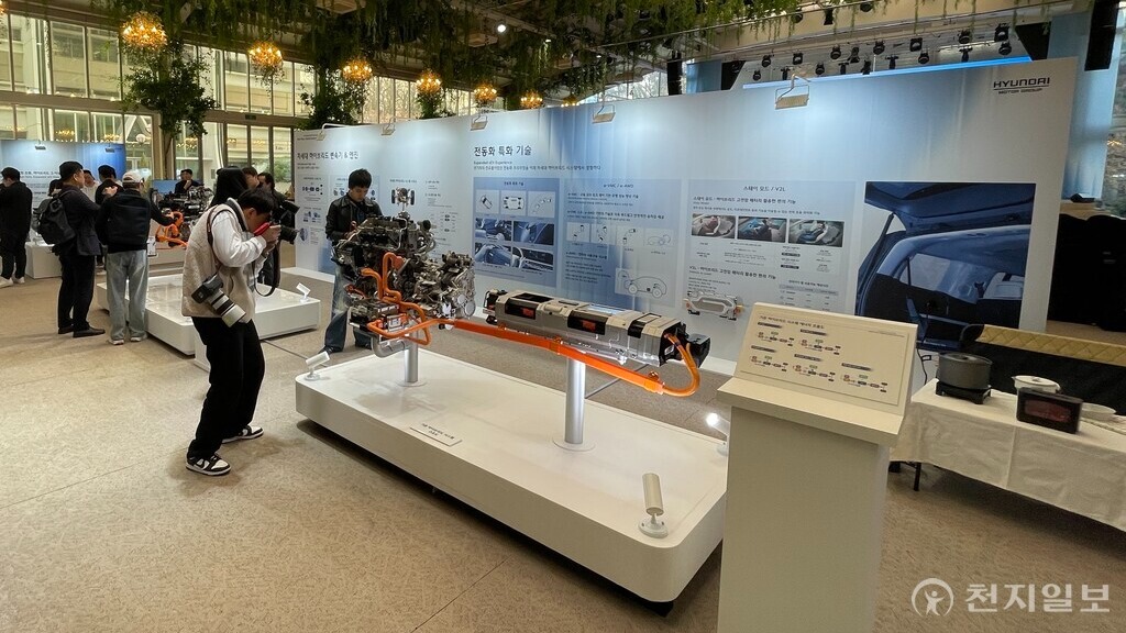 [천지일보=이재빈 기자] 현대차그룹이 10일 서울 중구 크레스트 72에서 ‘현대자동차그룹 차세대 하이브리드 시스템 테크 데이(Hyundai Motor Group Next-Gen. Hybrid System Tech Day)’를 열고 한층 진화한 하이브리드 기술력을 공개했다. 사진은 테크 데이 행사장 전경.