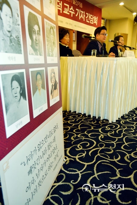 [천지일보=박선혜 기자] 한국 홍보 전문가 서경덕 성신여대 교수와 한국여성독립운동연구 전문가 10인이 엮은 ‘당신이 알아야 할’ 시리즈 세 번째로 ‘인물편-여성독립운동가 10인’의 이야기를 담은 ‘당신이 알아야 할 한국사 10-인물편 1’이 출간됐다. 29일 오전 한국프레스센터에서 열린 기자간담회에 생존해 있는 여성독립운동가 오희옥 지사, 서경덕 한국 홍보 전문가 겸 성신여대 교수, 심옥주 한국여성독립운동연구소장이 참석했다.