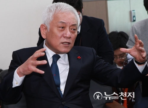 [천지일보=정인선 기자] 더불어민주당을 탈당한 무소속 김한길 의원이 4일 오후 국회 의원회관에서 기자간담회를 열고 향후 행보에 대해 말하고 있다. 김 의원은 “양당 중심 정치의 적대적 공생관계를 허물어 내야 한다”면서 제3세력의 필요성을 강조했다.