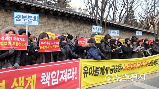 이 지회장은 “정부가 약속한 누리과정 교육 기회는 우리 아이들이 동일하게 보장받아야 함에도 서울시의회가 누리과정 예산을 삭감함으로 인해 서울시 유아들이 양질의 교육 기회를 박탈당하고 타 시도와 달리 차별받을 위기에 놓여있다”고 강조했다.