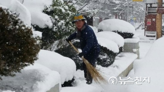[천지일보 나주=이진욱 기자] 사흘간에 걸친 폭설과 한파로 전국이 눈과 얼음으로 뒤덮인 가운데 누적 적설량 54㎝를 기록한 전남 나주시가 제설작업에 총력을 다하고 있다.