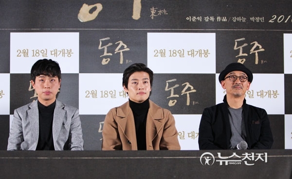 [천지일보=이혜림 기자] 28일 서울 동대문 메가박스에서 열린 영화 ‘동주’ 언론시사회에서 시인 윤동주 역의 강하늘(가운데)과 그의 영원한 벗이자, 라이벌이었던 독립운동가 송몽규 역의 박정민(왼쪽), 이준익 감독이 기자들의 질문을 기다리고 있다. 이준익 감독의 11번째 연출작 ‘동주’는 시인 윤동주와 그의 벗이자 라이벌이었던 독립운동가 송몽규의 청춘을 그린 영화로 오는 2월 18일 개봉한다.