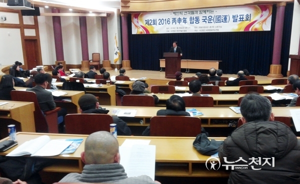 ㈔한국역술인협회의 제의를 받고 지난달 29일 오후 1시부터 국회의원회관에서 ‘혜안의 선각들과 함께 하는 2016 병신년(丙申年) 합동국운 발표회’ 장소(의원회관 2층 소회의실)를 제공한 새누리당 종교위원회 위원장 이이재 의원은 곤혹스러운 처지에 놓였다.