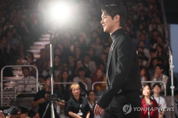 (부산=연합뉴스) 배우 고경표가 17일 부산 해운대구 우동 영화의전당에서 열린 제30회 부산국제영화제 개막식에 참석하고 있다.