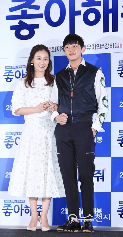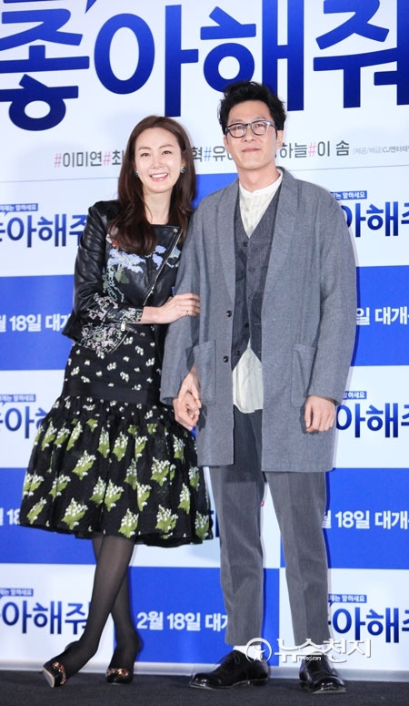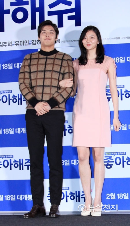 [천지일보=이혜림 기자] 3일 서울 CGV 왕십리에서 영화 ‘좋아해줘(감독 박현진, 제작 리양필름, 배급 CJ 엔터테인먼트)’ 언론시사회 및 간담회에서 배우 김주혁, 최지우, 이미연, 유아인, 강하늘, 이솜이 커플 포즈를 취하고 있다.