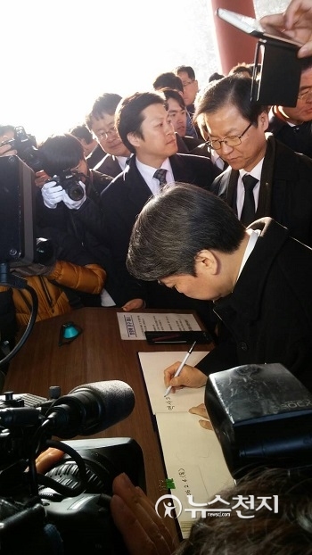 - 방명록 작성하는 천정배 국민의당 공동대표