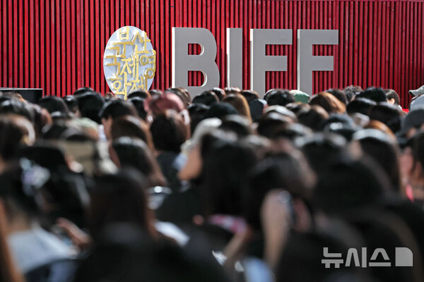 [부산=뉴시스] 제30회 부산국제영화제 영화 ‘국보’의 이상일 감독 오픈토크가 열리는 21일 부산 해운대구 영화의전당 BIFF 야외무대를 시민들이 이 감독의 이야기를 듣고 있다.