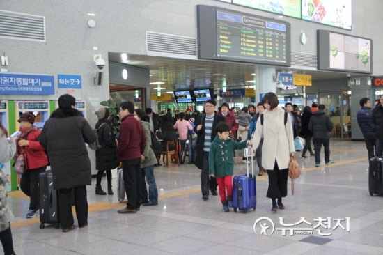 한해의 건강과 풍요를 기원하는 명절을 맞이해 광주 KTX 송정역 대기실에는 고향을 가려는 사람들의 발걸음들로 붐볐다.