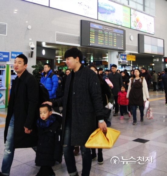 [천지일보 광주=이미애 기자] 민족 최대의 설 명절을 2일 앞둔 6일 오후 가족단위 귀성객들이 광주 KTX 송정역 대기실에 속속 들어왔다.