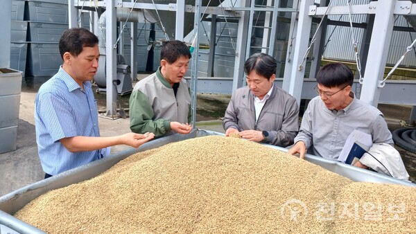 [천지일보=김지현 기자] 전북 김제시 신풍동 김제RPC를 방문한 농촌진흥청 국립식량과학원 곽도연 원장이 15일 관계자로부터 벼 작황 현황을 듣고 미곡처리시설을 둘러보고 있다. (제공: 농촌진흥청)