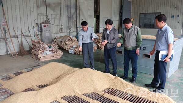 [천지일보=김지현 기자] 전북 김제시 신풍동의 벼 재배 농가를 방문한 농촌진흥청 국립식량과학원 곽도연 원장이 15일 농업인으로부터 벼 생육 현황을 듣고 수확 현장을 점검하고 있다. (제공: 농촌진흥청)