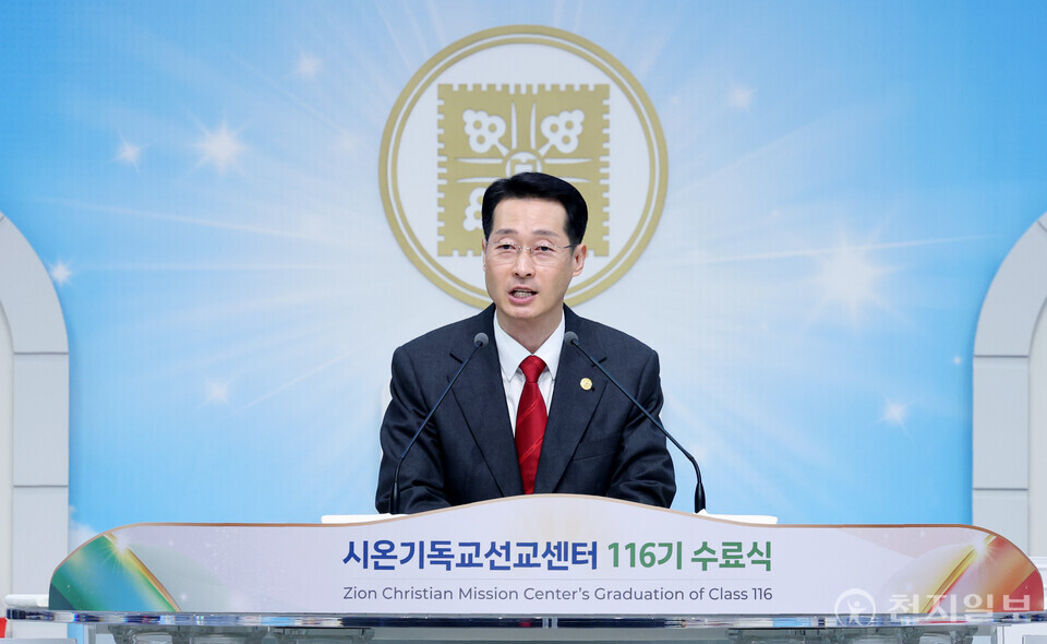 [천지일보=박준성 기자] 신천지예수교 증거장막성전 시온기독교선교센터가 2일 신천지 청주교회에서 ‘시온기독교선교센터 116기 수료식’을 진행하는 가운데 시온기독교선교센터 탄영진 총원장이 인사말을 전하고 있다.