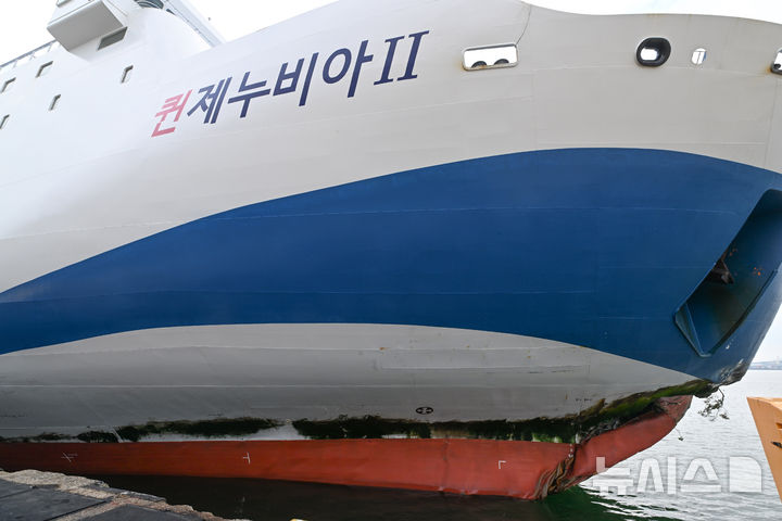 이전 기사보기 다음 기사보기 ‘좌초’ 퀸제누비아호, 찢기고 구부러진 흔적 역력 바로가기 복사하기 본문 글씨 줄이기 본문 글씨 키우기 스크롤 이동 상태바 ‘좌초’ 퀸제누비아호, 찢기고 구부러진 흔적 역력 천지포토 입력 2025.11.20 10:58 기자명 뉴시스 photo@newsis.com 페이스북(으)로 기사보내기 트위터(으)로 기사보내기 카카오톡(으)로 기사보내기 텔레그램(으)로 기사보내기 URL복사(으)로 기사보내기 바로가기 기사스크랩하기 다른 공유 찾기 본문 글씨 줄이기 가 본문 글씨 키우기 이 기사를 공유합니다 페이스북(으)로 기사보내기 트위터(으)로 기사보내기 카카오톡(으)로 기사보내기 텔레그램(으)로 기사보내기 URL복사(으)로 기사보내기 닫기 [목포=뉴시스] 20일 오전 전남 목포시 삼학부두에 좌초로 인해 선체 하단이 일부 파손된 퀸제누비아2호가 정박해있다. 2025.11.20. 천지일보는 24시간 여러분의 제보를 기다립니다. 천지일보 카톡 1644-7533 newscj@newscj.com 제보하기 뉴시스 photo@newsis.com 다른 기사 보기 저작권자 © 천지일보 무단전재 및 재배포 금지 개의 댓글 삭제기준 회원로그인 작성자 비밀번호 댓글 내용입력 댓글 정렬 최신순 추천순 답글순 BEST댓글 BEST 댓글 답글과 추천수를 합산하여 자동으로 노출됩니다. 닫기 더보기 댓글삭제 삭제한 댓글은 다시 복구할 수 없습니다. 그래도 삭제하시겠습니까? 비밀번호 닫기 댓글수정 댓글 수정은 작성 후 1분내에만 가능합니다. 본문 / 400 비밀번호 닫기 내 댓글 모음 닫기