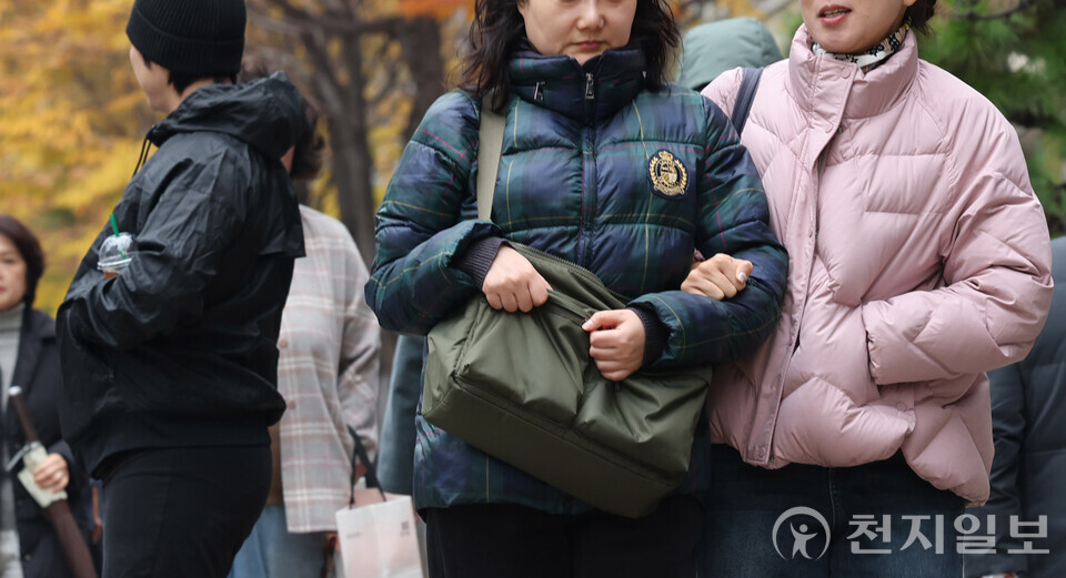 [천지일보=남승우 기자] 쌀쌀한 가을 날씨를 보인 25일 서울 시내의 거리에서 두꺼운 외투를 입은 시민들이 발걸음을 옮기고 있다.