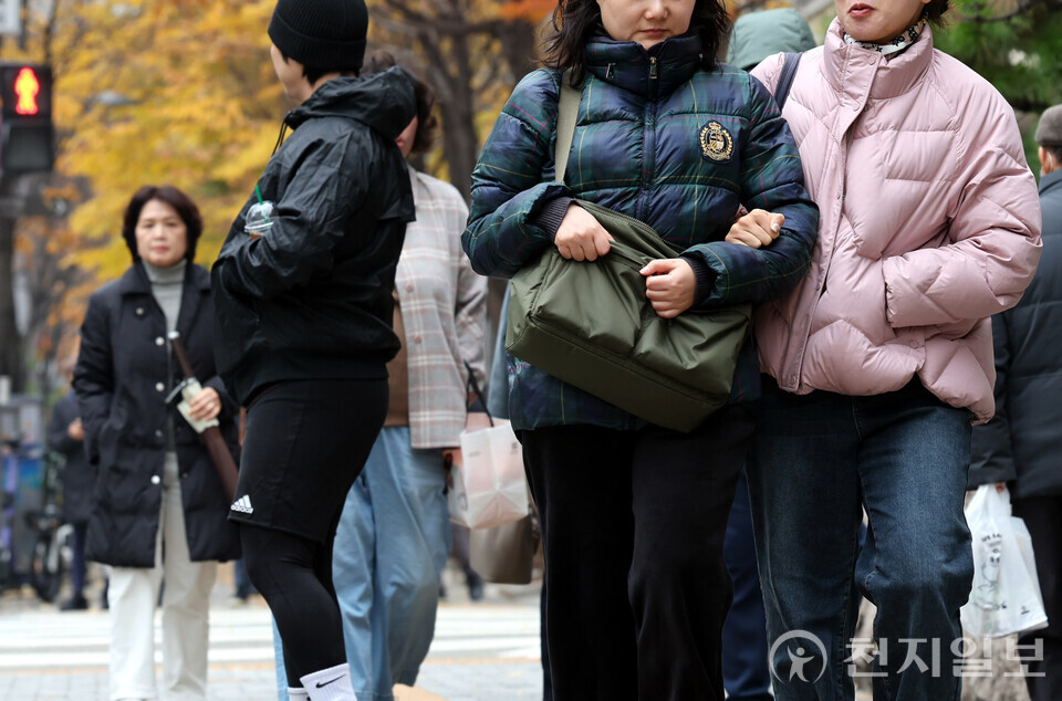 [천지일보=남승우 기자] 쌀쌀한 가을 날씨를 보인 25일 서울 시내의 거리에서 두꺼운 외투를 입은 시민들이 발걸음을 옮기고 있다.