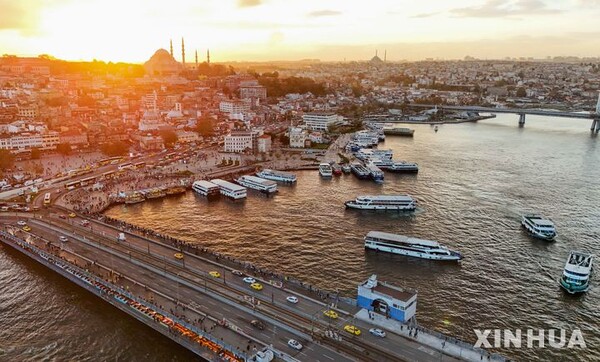 [이스탄불=신화/뉴시스] 24일(현지 시간) 튀르키예 이스탄불 유럽 지역에 있는 골든혼이 석양에 물들고 있다. '골든혼'은 이스탄불에서 가장 활발한 자연 항만으로 알려져 있다. 2025.11.25.