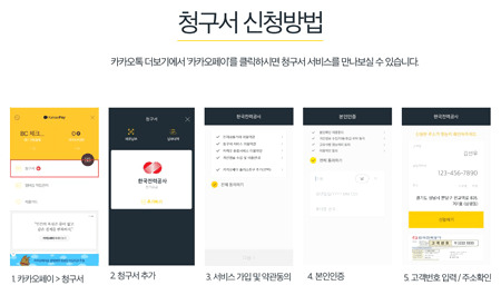이 서비스는 스마트폰에서 카카오톡을 최신 버전으로 업데이트하면 카카오페이 ‘청구서’ 항목이 새로 생기며, 이를 통해 전기요금 청구내역을 확인하고 요금납부도 간편하게 할 수 있는 서비스다.