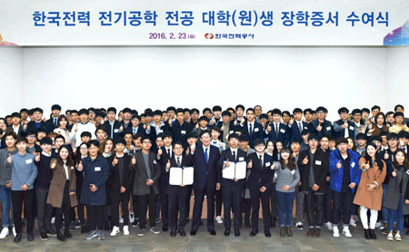 [천지일보=이태교 기자] 한국전력공사(사장 조환익)가 23일 오후 본사에서 전기공학 전공 대학(원)생 장학증서를 수여했다.