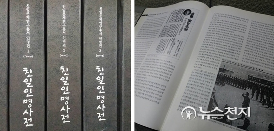 한편 친일인명사전은 지난 2009년 민족문제연구소가 편찬한 책으로 총 3권 분량에 박근혜 대통령의 부친 박정희 전 대통령, 방응모 조선일보 전 사장, 애국가 작곡가로 알려진 음악인 안익태 등 유명 인사를 포함한 4389명이 친일 인사로 기록돼 있다.