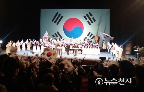 [천지일보=김민아 기자] 1일 서울 종로구 세종문화회관에서 열린 제97주년 3.1절 기념행사 참석자들이 만세삼창을 외치고 있다.