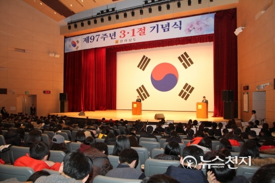 ▲ 제97주년 3.1절을 맞아 1일 오전 10시 전남도청 김대중강당에서 기념식이 열리고 있다. ⓒ천지일보(뉴스천지)