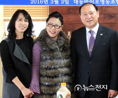 [천지일보=배정임 기자] ‘유망중소기업 대상 선정위원회’가 2015 유망중소기업 대상을 받은 대농바이오영농조합법인(우리산삼, 대표 황성헌)을 3일 현장 탐방했다. 이날 행사에서 남궁정애(남궁국악연구원장) 명창(사진 가운데)이 경기민요와 아리랑 등 여러 곡의 민요를 부른 후 황상헌 대표와 기념촬영을 하고 있다.