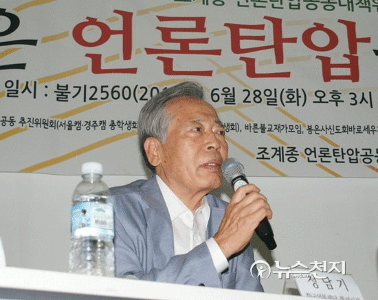 [천지일보=차은경 인턴기자] 조계종언론탄압공동대책위원회(조탄공)가 28일 서울 중구 세종대로 서울시청 시민청에서 ‘조계종의 언론탄압 중단’을 촉구하는 토론회를 개최한 가운데 정남기 전(前) 한국언론재단 이사장이 ‘언론의 사명과 언론의 자유’에 대해 발표하고 있다.