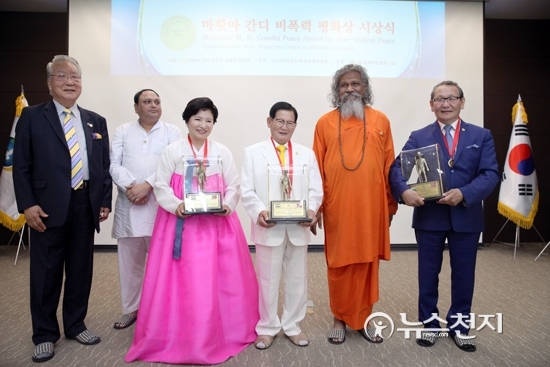 19일 오후 경기도 가평군 HWPL 평화연수원에서 열린 시상식은 인도 ‘마하트마 간디 비폭력 평화상 위원회(회장, 프라사나 쿠마르 파타사니 인도 하원의장)’ 주최로 열렸다.