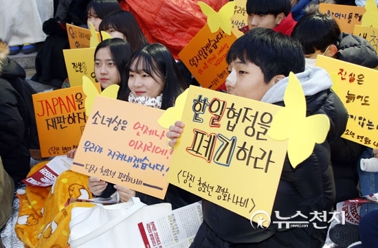 이날은 한일 위안부 합의 1주년이자 2016년 마지막 수요일로 고인이 된 위안부 피해자 할머니를 추모하는 수요시위가 진행됐다.