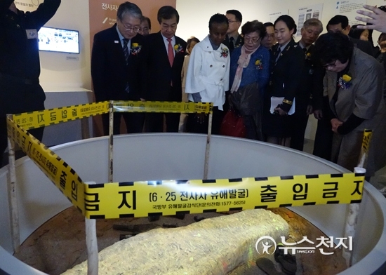 [천지일보=장수경 기자] 대한민국역사박물관과 국방부 유해발굴감식단이 2017년의 첫 번째 특별전 ‘67년만의 귀향’전을 11일 개최한 가운데, 유가족들이 재현된 유해 발굴 현장을 보고 있다. 유가족들은 재현된 유해 발굴 현장을 보자 눈물을 글썽이기도 했다.