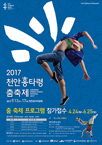 [천지일보 천안=박주환 기자] 충남 천안문화재단(이사장 구본영)이 오는 9월 13~17일 개최하는 ‘천안흥타령춤축제2017’ 참가팀을 6월 25일까지 접수한다고 2일 밝혔다.