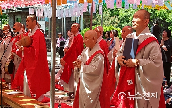 [천지일보=박준성 기자] 3일 불기 2561년(2017년) 부처님오신날을 맞아 한국불교태고종 총본산 봉원사에서 봉축법요식이 봉행되고 있다. 태고종은 이날 오전 봉원사를 비롯한 법륜사, 선암사, 백련사 등 전국 사암에서 부처님 오심을 찬탄하는 봉축법요식을 일제히 봉행했다.