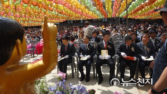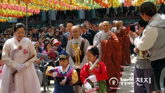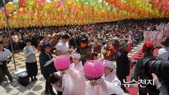 [천지일보 경기=강은주 기자] 불기 2561년 부처님오신날인 3일 오전 경기도 화성시 대한불교 조계종 제2교구 본사 용주사에서 봉축법요식이 열렸다.