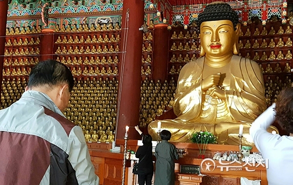 [천지일보=박준성 기자] 3일 불기 2561년(2017년) 부처님오신날을 맞아 한국불교태고종 총본산 봉원사에서 봉축법요식이 봉행됐다. 봉원사를 찾은 불자들이 삼천불전에서 기도를 드리고 있다. 삼천불전에는 3000개의 작은 불상이 있다.