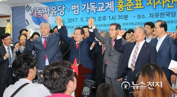 보수 진영에서는 기독자유당이 몇몇 목회자들과 함께 지난 2일 자유한국당 당사에서 기자회견을 열고 홍준표 후보에 대한 지지를 선언했다. 이날 진보 진영에서도 기독교대한감리회(기감) 신경하 전 감독회장 등 목회자 3000명이 서울 여의도 국회 정론관에서 기자회견을 열고 더불어민주당 문재인 후보 지지 선언을 했다. 양측 모두 개신교인들이 세력을 이뤄 특정후보 지지를 선언한 기자회견이었지만 교계 반응은 사뭇 달랐다.