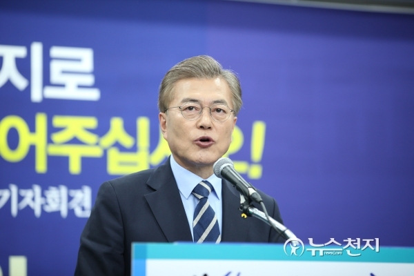 [천지일보=박정렬 기자] 더불어민주당 문재인 대선후보가 선거운동 마지막날인 8일 오전 중앙당사에서 기자회견을 열고 “단순한 정권교체가 목표가 아니라 우리에게는 새로운 대한민국이 목표”라며 압도적 지지를 호소하고 있다.