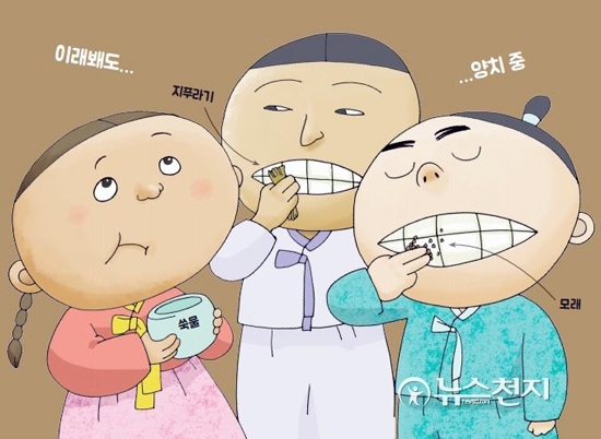그러나 소금도 서민에겐 귀했다. 오늘날과 달리 당시에는 가격이 비쌌던 것. 그렇다고 식사 후 양치질을 안 한 게 아니었다. 이들은 주로 강가의 고운 모래를 이용해 이를 닦았다. 또 쑥을 달인 물을 이용해 입 안을 헹구기도 하고, 지푸라기를 이용해 치아를 닦아냈다.