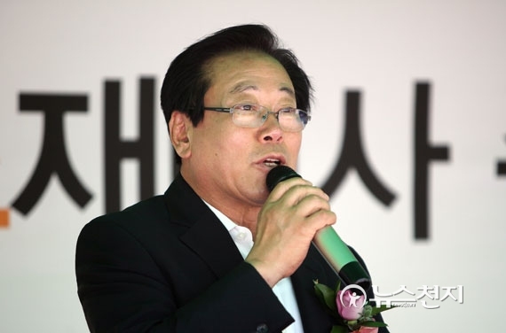 [천지일보=박혜옥 기자] 15일 오후 경기도 광주시 퇴촌면에서 열린 ‘대농바이오 새싹·채소 재배사 준공식’에서 조억동 광주시장이 축사를 하고 있다.