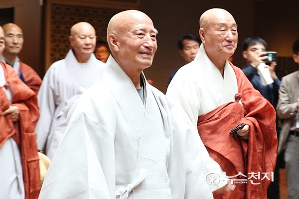 [천지일보=이지솔 인턴기자] 한국불교 최대 종파인 대한불교조계종 제35대 총무원장에 설정스님(75)이 당선된 가운데 설정스님이 자승스님을 만나기 위해 총무원장실로 이동하고 있다.
