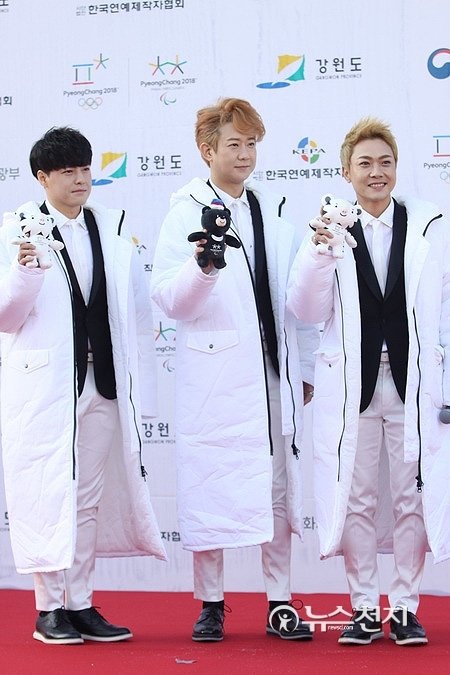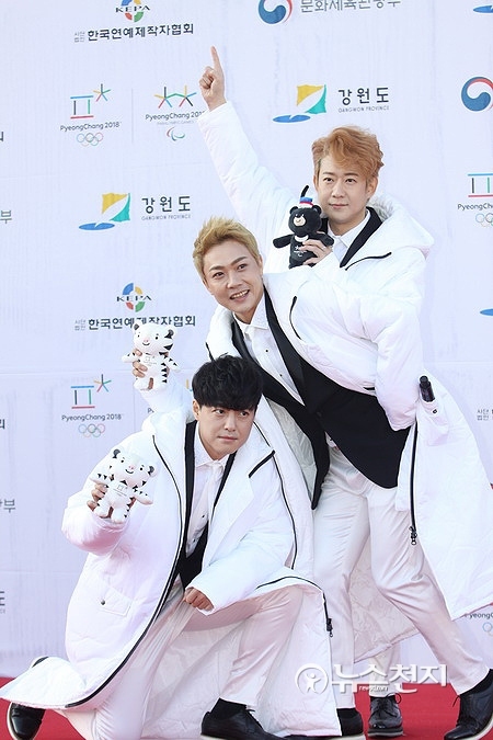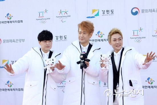 [천지일보=유용주 객원기자] 그룹 NRG가 4일 오후 강원도 평창군 대관령면 평창올림픽플라자 특설무대에서 열린 2018 평창동계올림픽 G-100 특별이벤트 ‘2017 드림콘서트 in 평창’ 포토월에서 포즈를 취하고 있다.