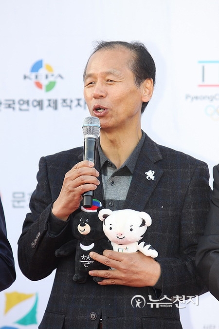 [천지일보=유용주 객원기자] 최문순 강원도지사가 4일 오후 강원도 평창군 대관령면 평창올림픽플라자 특설무대에서 열린 2018 평창동계올림픽 G-100 특별이벤트 ‘2017 드림콘서트 in 평창’ 포토월에서 소감을 말하고 있다.