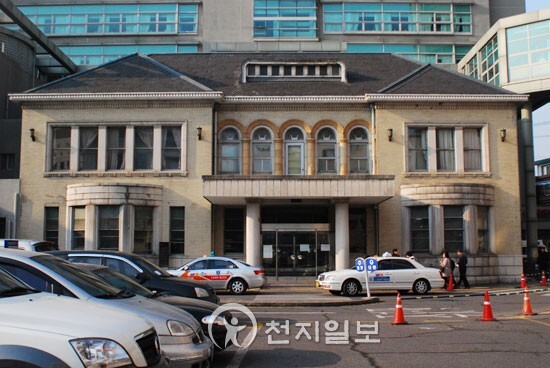 [천지일보=박선혜 기자] 포르말린 냄새를 풍기는 병원 안. 환자와 보호자로 정신없는 틈 속에 이리저리 둘러보니 우측 한편에 비상통로로 보이는 곳이 있다. 문에는 ‘경교장 복원 공사 현장’이라고 쓰여 있었으며 출입이 통제됐다.