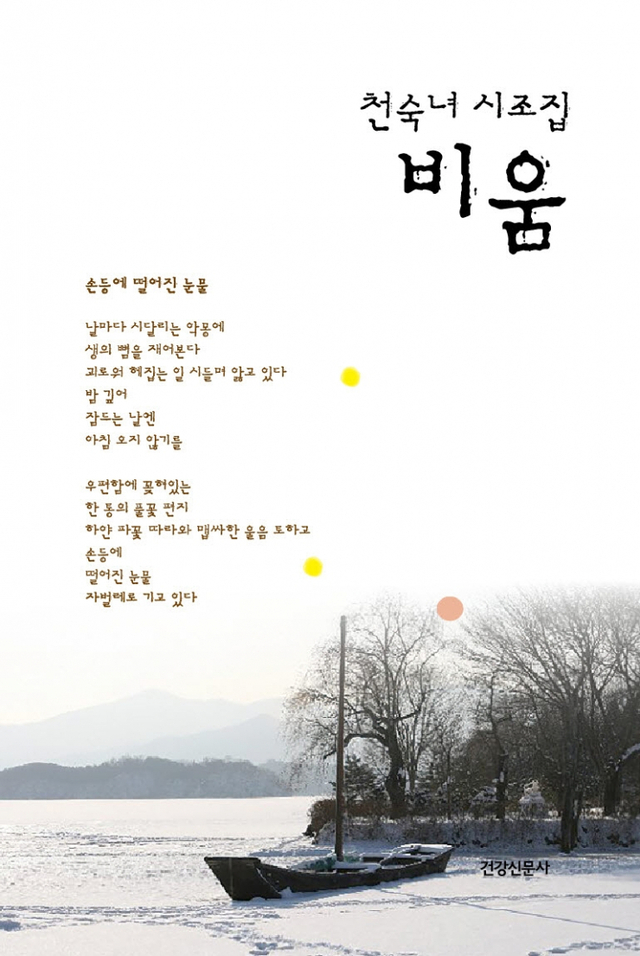 천숙녀 시인의 자전적 시조집 ‘비움’을 관통하는 전체적 기조는 ‘내려놓기’와 ‘비우기’이다. 내려놓고 비우게 되면 몸도 마음도 가벼워지지만, 몸과 마음이 무거울 때는 보지 못했던 꽃, 나무, 풀도 볼 수가 있게 된다. 당신을 무겁게 했던 그 많은 것들. 집착과 상처와 번뇌와 고민들, 당신도 한번 내려놓고 비워보시라. 정말 삶이 혼곤하고 지친다면 천숙녀 시인이 보내드리는 들꽃 향내를 한번 맡아보시라.