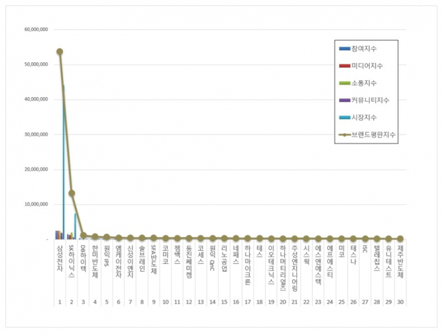 브랜드에 대한 평판은 브랜드에 대한 소비자들의 활동 빅데이터를 참여가치, 소통가치, 소셜가치, 시장가치, 재무가치로 나누게 된다. 반도체 상장기업 브랜드평판지수는 참여지수, 미디어지수, 소통지수, 커뮤니티지수, 시장지수로 분석했다.
